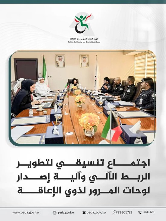 A coordination meeting was held to develop the automated link and mechanism for issuing traffic license plates for people with disabilities. Dr. Dalal Dhari Al-Othman, Director General of the Public Authority for Disability Affairs, held the meeting with the Ministry of Interior.