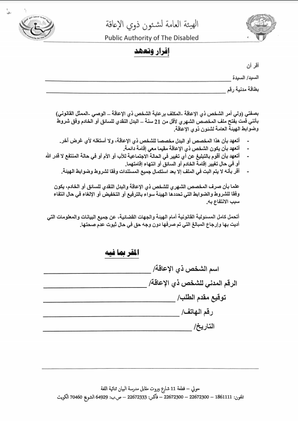- Civil ID’s for both people with disabilities and the assignment applicant (provided that the address in both cards matches)